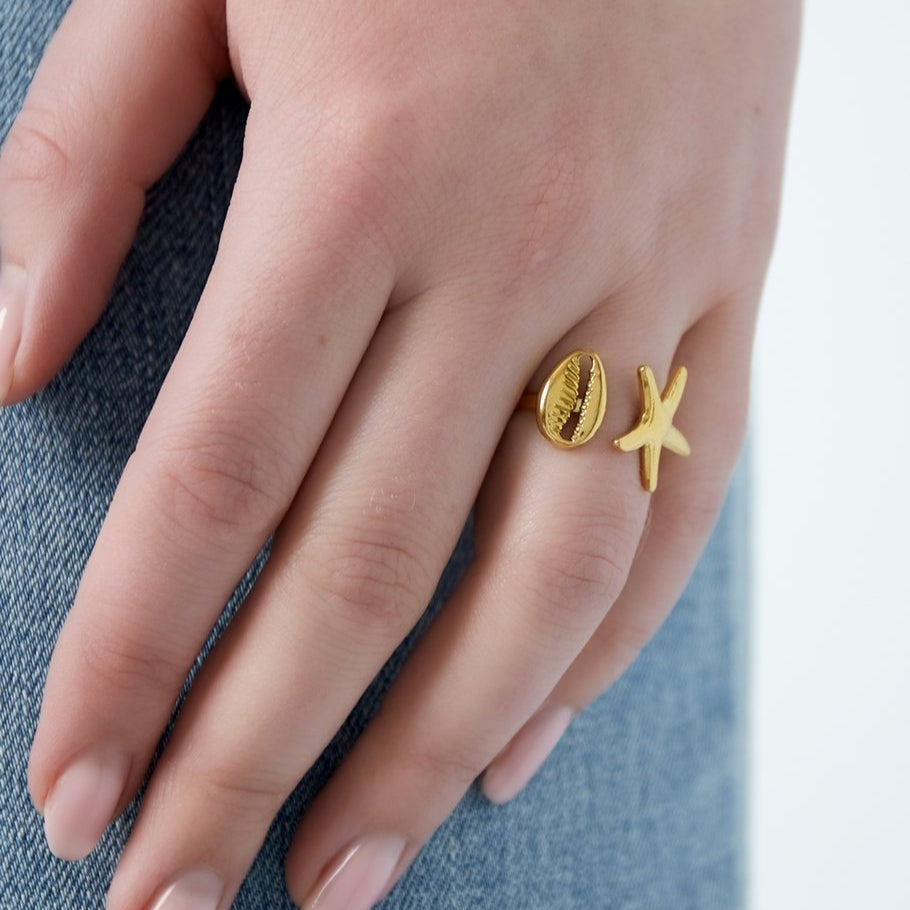 Voor de beach liefhebbers! De Shell Ring heeft een mooi vorm van een schelp met steentjes erop. Subtiel, vrouwelijk en een must-have in iedere sieradencollectie.