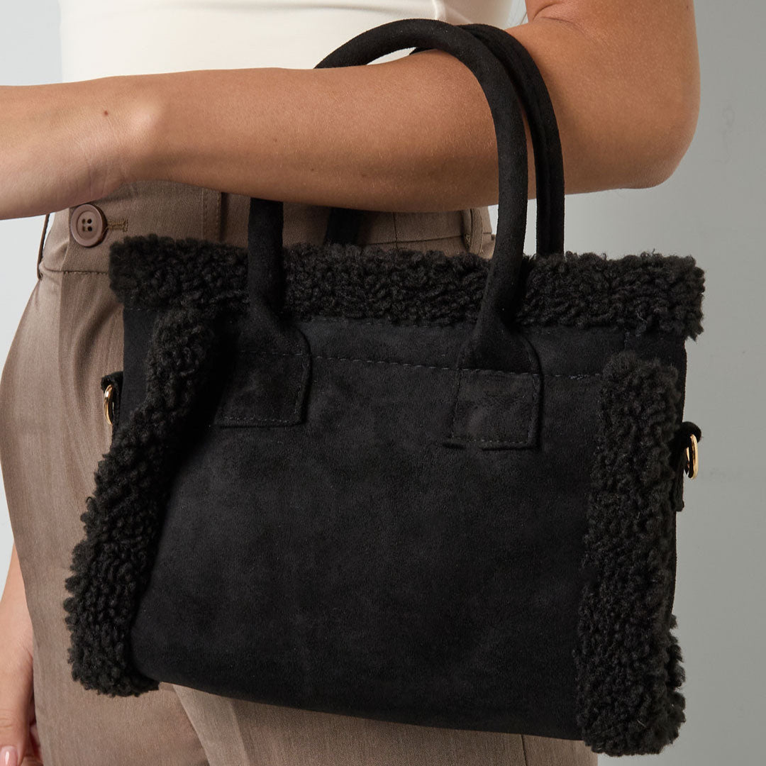 De Teddy Mini Tote is compact maar opvallend. Deze schattige handtas is afgewerkt met zachte teddy-details en heeft een stevige vorm die zowel speels als stijlvol oogt. Draag 'm nonchalant in de hand of gebruik de verstelbare strap voor een casual crossbody look. Verkrijgbaar in beige, bruin of zwart voor elke mood een match.