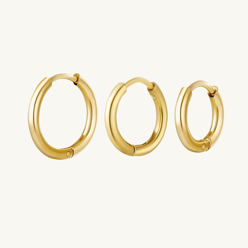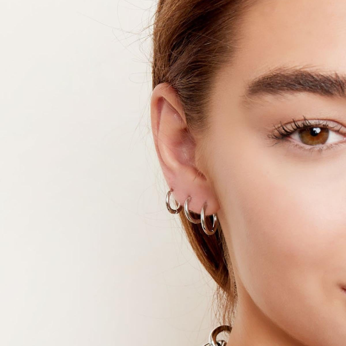 De Creoles Earrings Set bevat drie paar minimalistische hoops in verschillende formaten. Voor een strakke, elegante look. Draag ze solo voor subtiele glans of combineer verschillende maten voor een gelaagd earstack-effect.