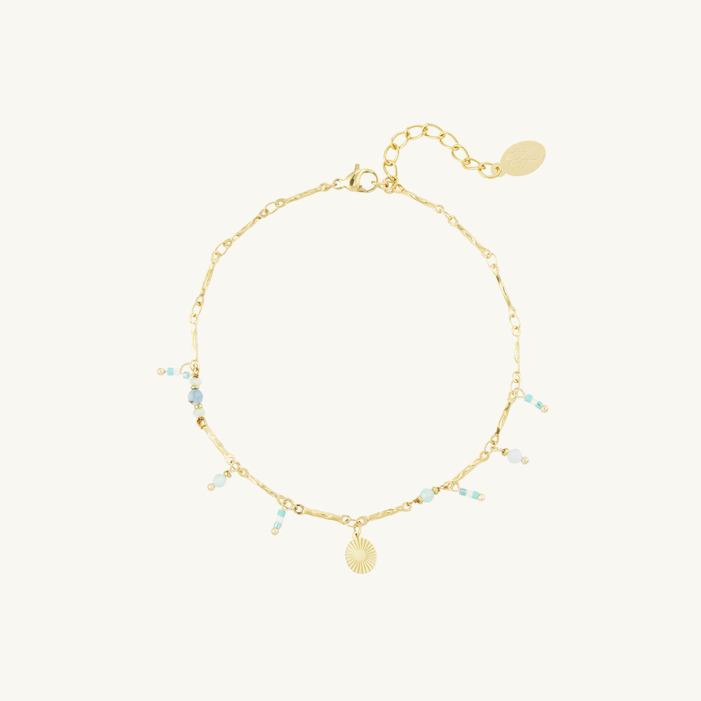 De Bliss Anklet combineert kleurrijke glaskralen, glanzende hematiet en natuurlijke steentjes tot een vrolijk geheel dat meteen opvalt. Licht om te dragen en vol karakter — een absolute must-have bestseller voor zonnige dagen, strandmomenten en summer fun.