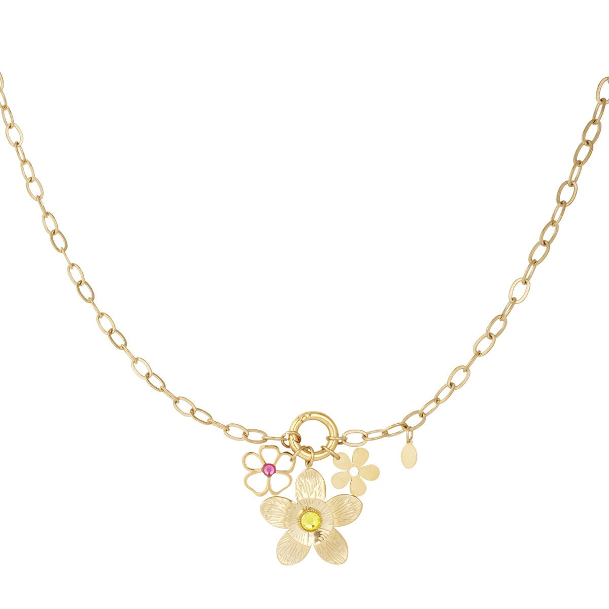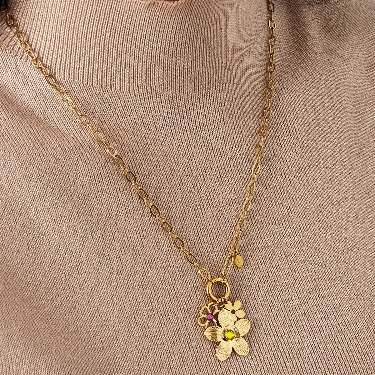 Deze ketting brengt een vrolijke en frisse uitstraling dankzij het speelse bloemmotief. De lichte glans geeft elke outfit een zachte charme.