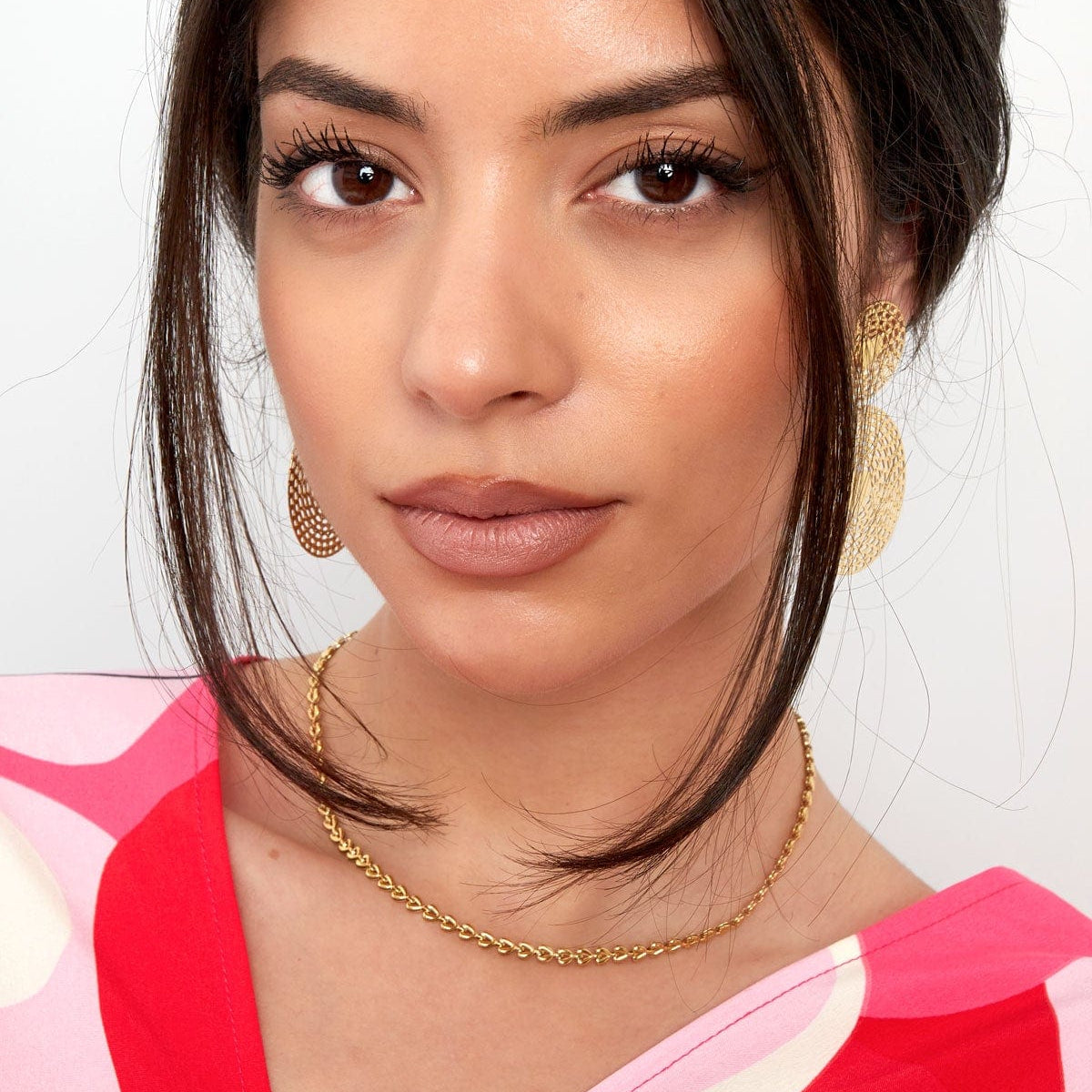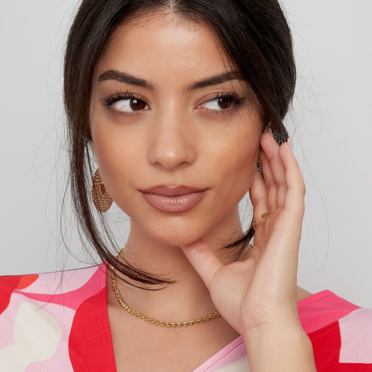 Onze sieraden zijn vervaardigd uit 18k premium gold plated en silver plated brass. Dankzij de hoogwaardige plating behoudt elk sieraad zijn glans en gaat het jarenlang mee.